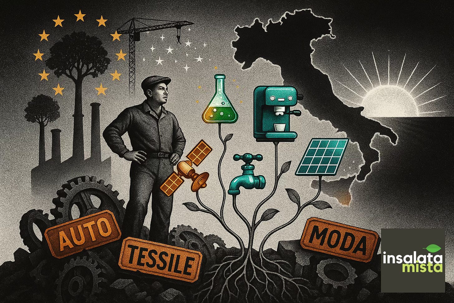 Questa condizione di precarietà permanente ha però forgiato un modello unico: un sistema industriale fatto di piccole e medie imprese, spesso famigliari, che riescono a reagire con una velocità e una flessibilità che i grandi colossi internazionali non possono permettersi. È vero, l’Italia non è mai riuscita a trasformare in modo strutturale queste imprese in grandi gruppi organizzati, capaci di competere su scala globale. Il risultato è che, mentre si esaltava il mito del “piccolo è bello”, molte eccellenze sono finite nelle mani di multinazionali straniere — come ho raccontato nella precedente Insalata, “Ma quale Made in Italy, ormai l’Italia è un bel set cinematografico”.