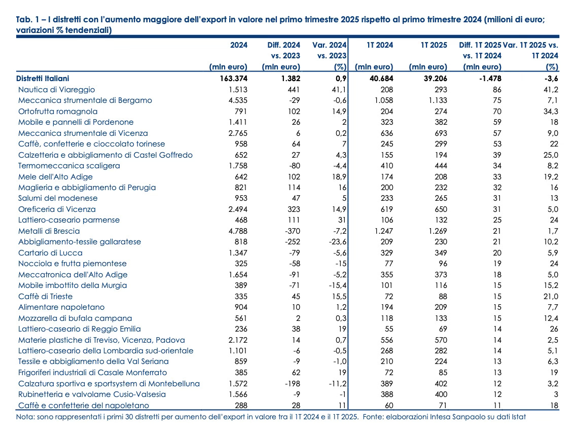 Eppure, questa stessa struttura molecolare è la nostra forza. È ciò che rende l’industria italiana rapida nel cambiare rotta, nel riorganizzarsi, nel cogliere le trasformazioni globali prima che diventino irreversibili. Dai settori tradizionali che rallentano — materiali da costruzione (+1,5%), alimentari (+1,2%), meccanica (-1,1%), arredo (-2,2%) e moda (-4,3%) — emergono ora filiere nuove, nate proprio come reazione alle crisi: la nautica di Viareggio, la meccanica di Bergamo e Vicenza, la termomeccanica veronese, l’agroalimentare di qualità con i suoi distretti di frutta, salumi, dolci e caffè. Persino nei comparti della moda, dove Arezzo, Firenze ed Empoli segnano un calo di un miliardo di euro di export, ci sono distretti — come Vicenza, Perugia e Castel Goffredo — che continuano a crescere.