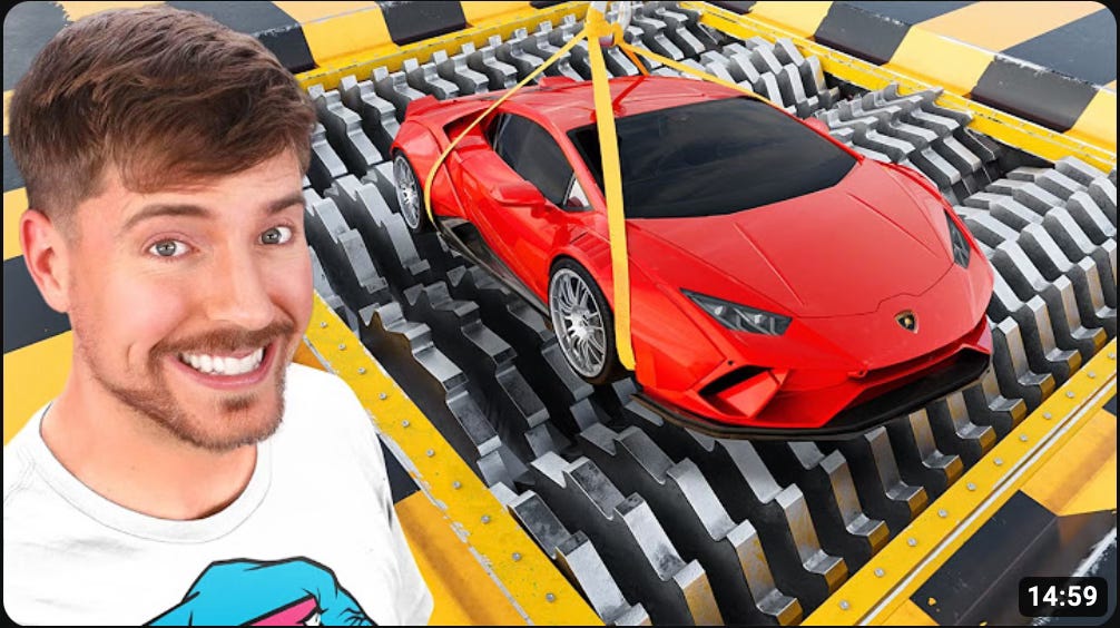 Difatti io Mr Beast non l'avevo mai sentito se non citato da te in qualche newsletter precedente, credo. Ma mia figlia sì, così come tanti suoi amici, e mi chiedo perché dei ragazzini siano il target di video del genere, se non per la breve durata e il montaggio. Ma così come, anche se non ci piace un personaggio televisivo, lo riconosciamo comunque, così anche per la piccola bolla delle prime medie un Mr. Beast venga riconosciuto da chiunque usi YouTube, anche se magari non piaccia a tutti.